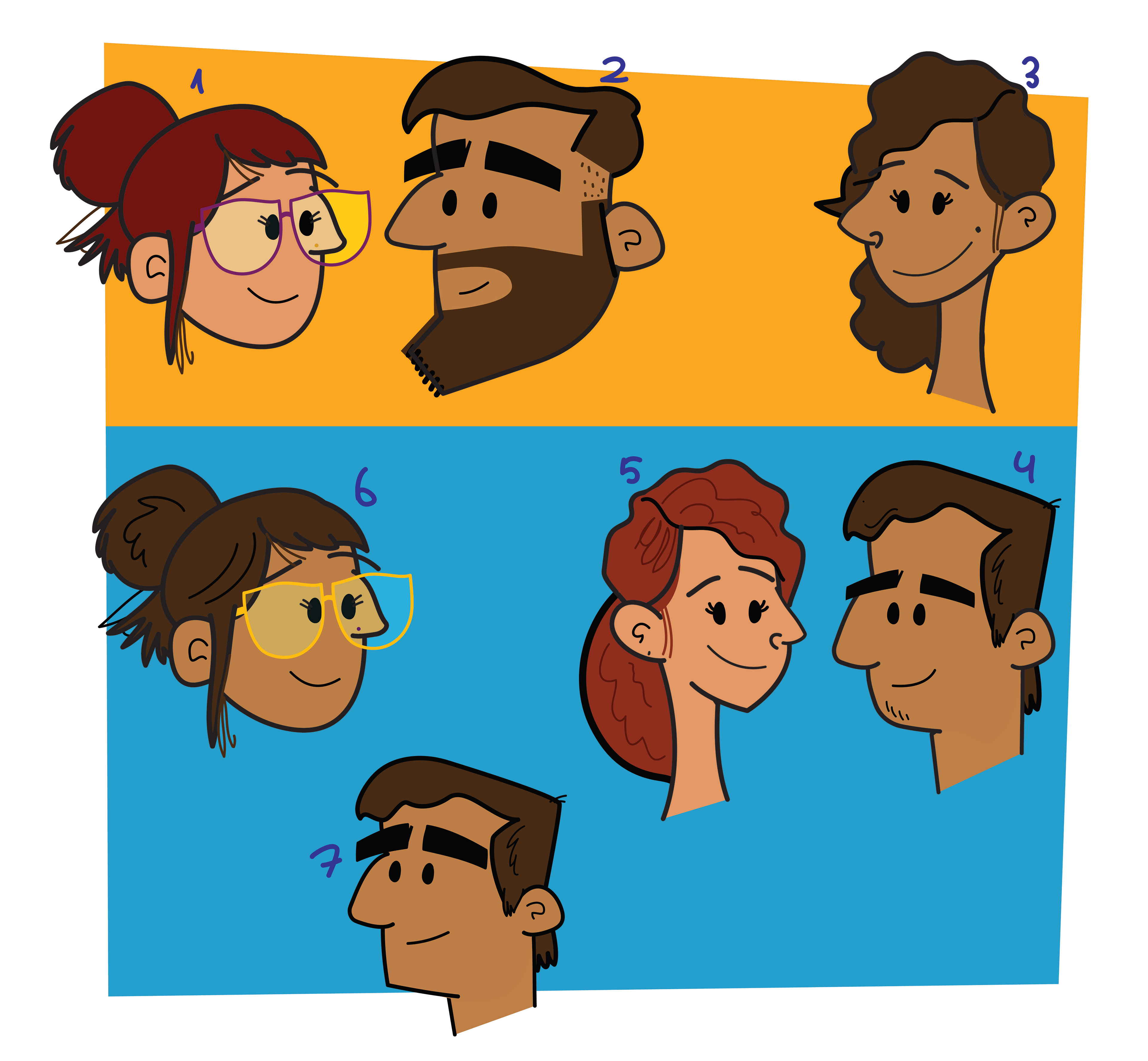 Character Design options on the left vs. Final designs on the right